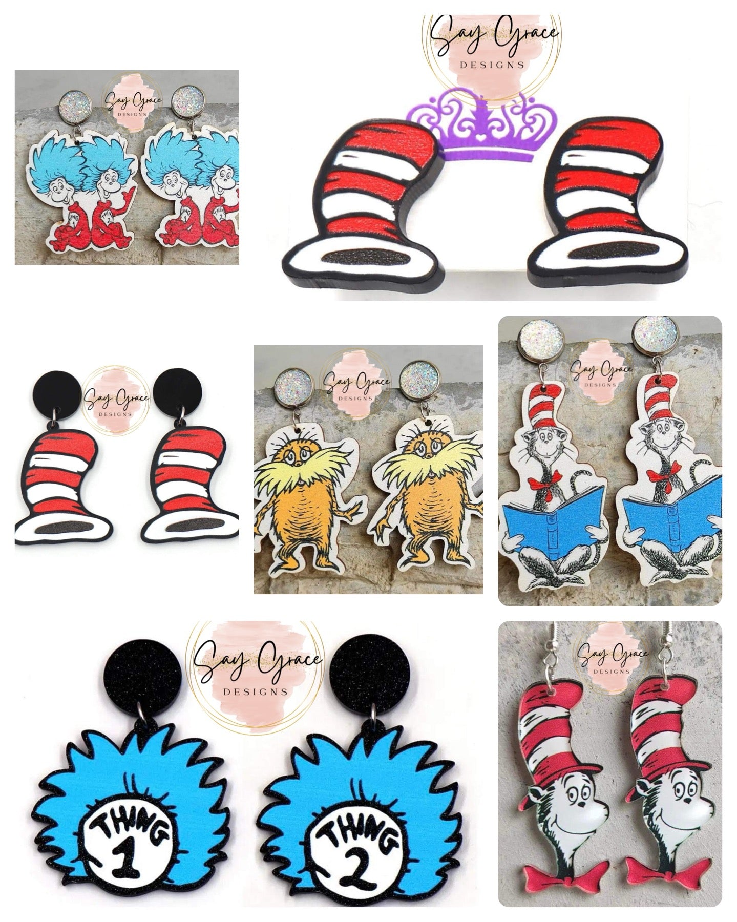 ❤️Preorder Dr Se*ss Day Acrylic/Wooden Earrings